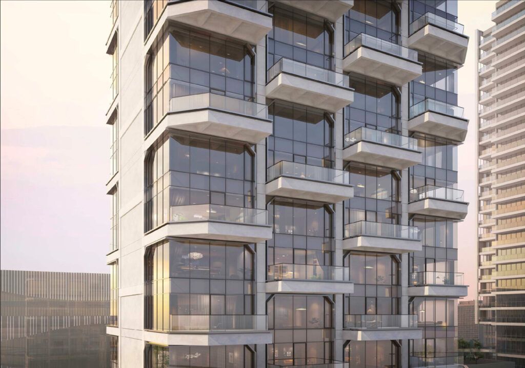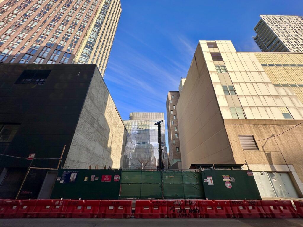 95 Rockwell Place ranks No. 30 on New York’s tallest projects under construction. The 489-foot, 38-story mixed-use tower in Fort Greene, Brooklyn—designed by Fogarty Finger and developed by Charney Companies—will feature 158 condominiums averaging 855 square feet, along with 32,568 square feet of commercial space. The former five-story building on the site has been demolished, excavation is underway, and foundation work is expected to begin this winter. The design includes floor-to-ceiling windows, white concrete framing, black metal paneling, staggered trapezoidal balconies, and a multifaceted crown. Completion is anticipated in summer 2027.